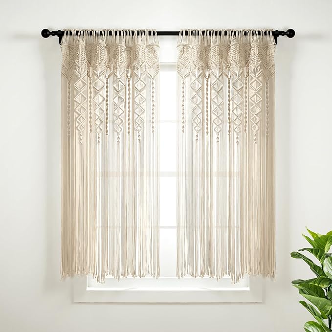 - Macrame Curtain: Create a textured boho look in multiple rooms of your home with this versatile decorative Boho Macrame Textured Cotton Window Curtain Panel. This macrame curtain has a beautiful hand-knotted pattern, adding visual interest to your space.