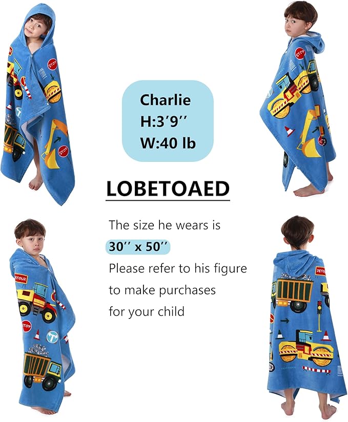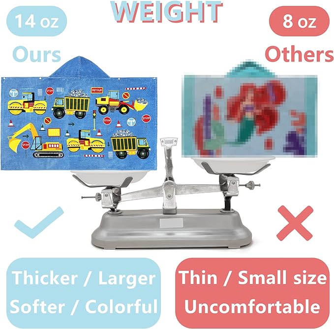 • ?OVERSIZE SIZE KIDS TOWEL?? A hooded towel bath wrap measuring 50" x 30" (127 x 76cm) with a 10" x 10"(25 x 25cm) hood.It comes in at 14 ounces(400 grams),it's pretty thick!Suitable for toddlers&kids from 5 to 12 years old.It is big enough to accompany your child's growth