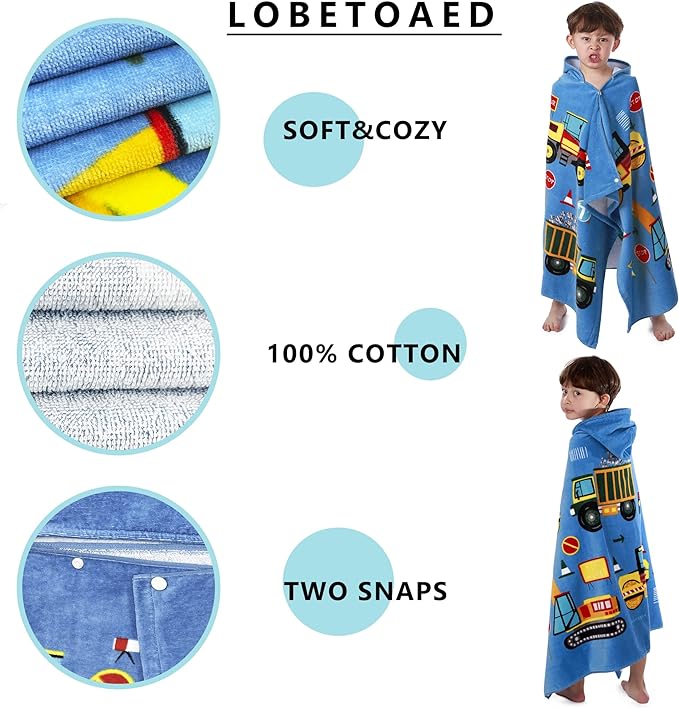 • ?MORE FRIENDLY DESIGN for KIDS?? Our baby bath & hooded towel has two snaps on the side to help you wrap your child up in comfort and playful style.This surf poncho is easy to put on and off, and will not slide down from body.The hood can helps dry your child's hair. We have many cute cartoon styles suitable for boys & girls like Dinosaur, Mermaid, Cat, Unicorn, Shark, Car, Narwhal...