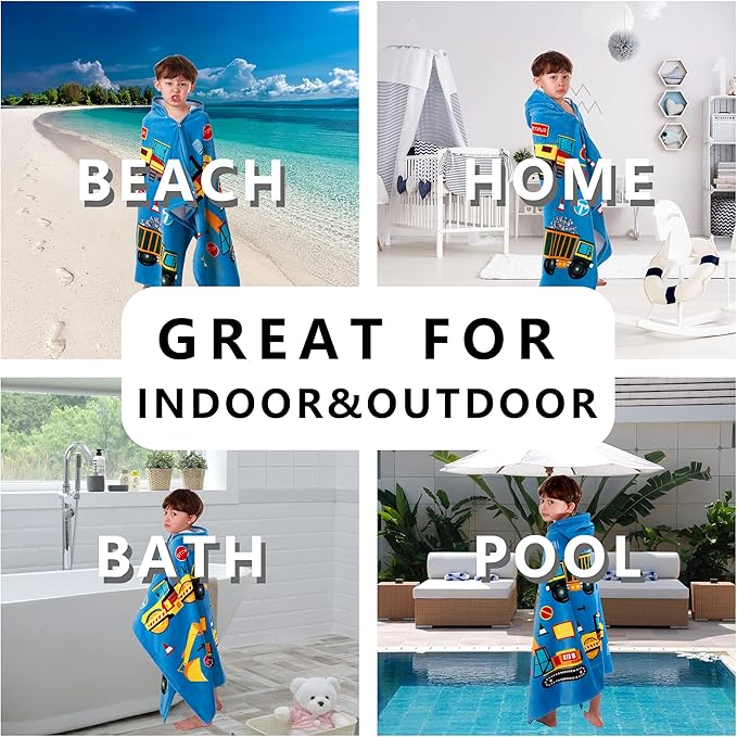 • ?MACHINE WASHABLE & NO FADE?? It can full cover up your child when they need to change clothes at beach or pool. Wearable bath towel is perfect for indoor and outdoor, bathroom, home, beach or pool accessory. Thanks to the excellent quality of the toddler towels, you can put it in the washing machine and dryer without worrying about the pattern fading
