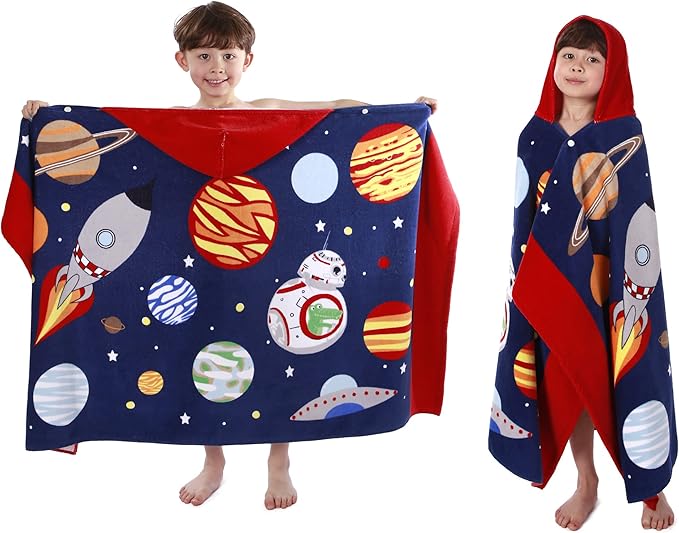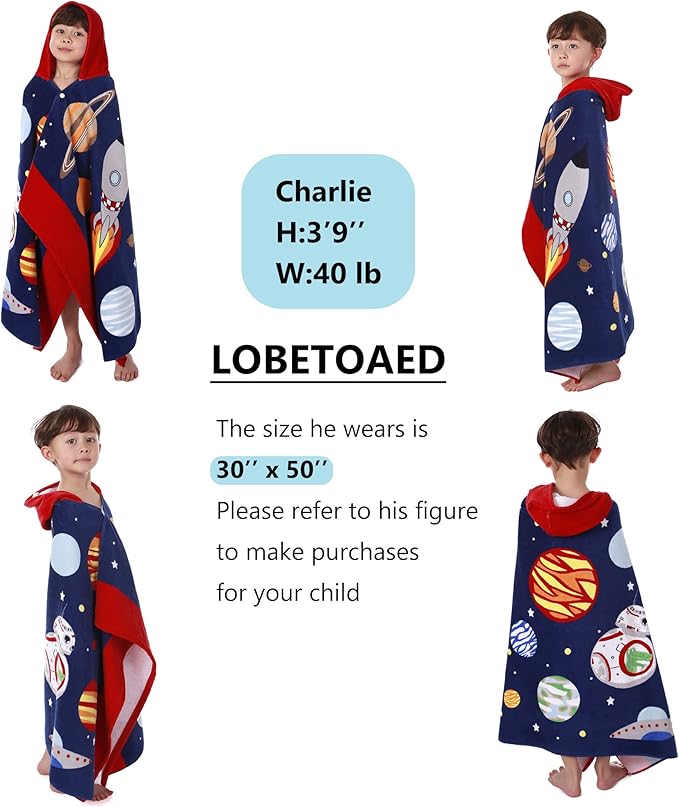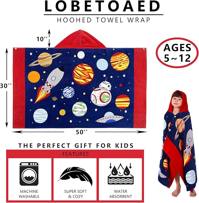 • ?OVERSIZE SIZE KIDS TOWEL?? A hooded towel bath wrap measuring 50" x 30" (127 x 76cm) with a 10" x 10"(25 x 25cm) hood.It comes in at 14 ounces(400 grams),it's pretty thick!Suitable for toddlers&kids from 5 to 12 years old.It is big enough to accompany your child's growth