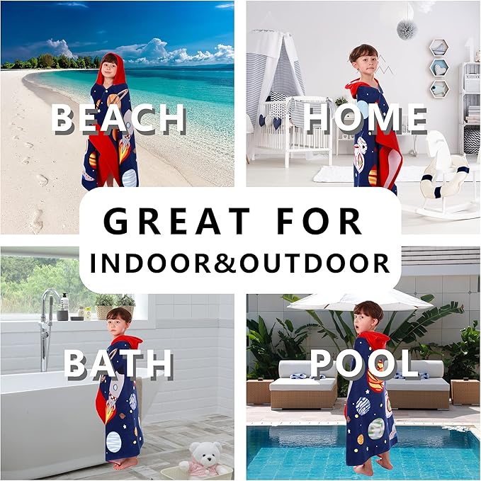 • ?MACHINE WASHABLE & NO FADE?? It can full cover up your child when they need to change clothes at beach or pool. Wearable bath towel is perfect for indoor and outdoor, bathroom, home, beach or pool accessory. Thanks to the excellent quality of the toddler towels, you can put it in the washing machine and dryer without worrying about the pattern fading