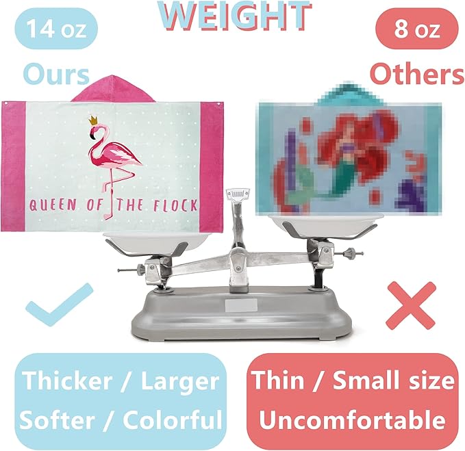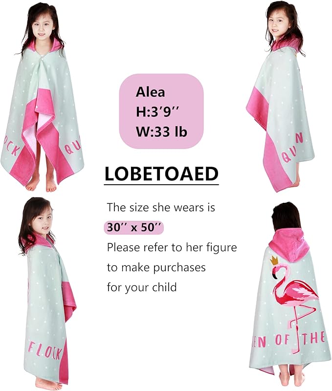 • ?OVERSIZE SIZE KIDS TOWEL?? A hooded towel bath wrap measuring 50" x 30" (127 x 76cm) with a 10" x 10"(25 x 25cm) hood.It comes in at 14 ounces(400 grams),it's pretty thick!Suitable for toddlers&kids from 5 to 12 years old.It is big enough to accompany your child's growth