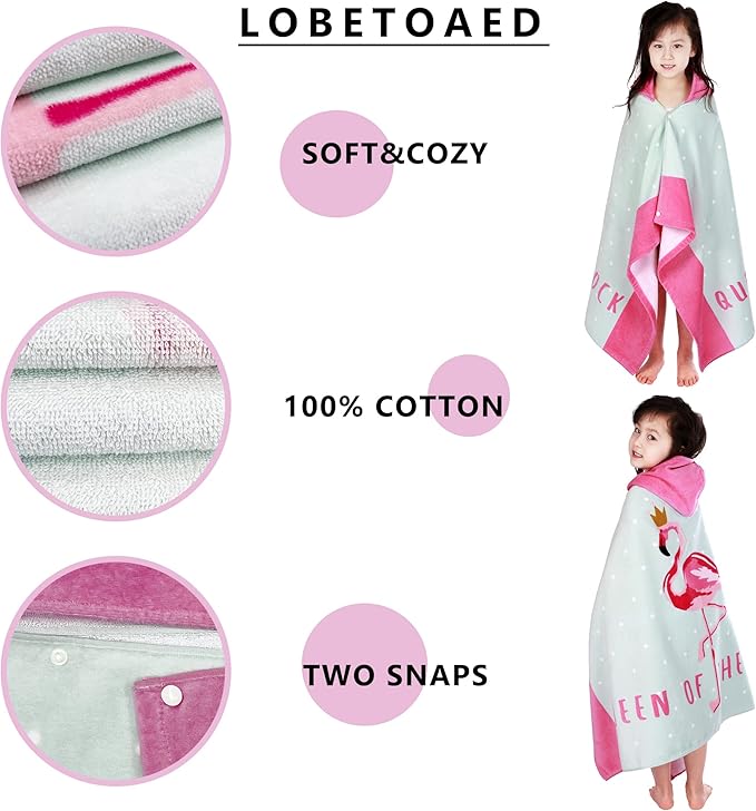 • ?MORE FRIENDLY DESIGN for KIDS?? Our baby bath & hooded towel has two snaps on the side to help you wrap your child up in comfort and playful style.This surf poncho is easy to put on and off, and will not slide down from body.The hood can helps dry your child's hair. We have many cute cartoon styles suitable for boys & girls like Dinosaur, Mermaid, Cat, Unicorn, Shark, Car, Narwhal...