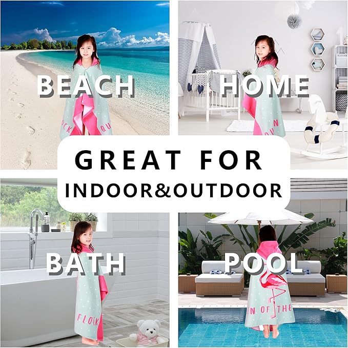 • ?MACHINE WASHABLE & NO FADE?? It can full cover up your child when they need to change clothes at beach or pool. Wearable bath towel is perfect for indoor and outdoor, bathroom, home, beach or pool accessory. Thanks to the excellent quality of the toddler towels, you can put it in the washing machine and dryer without worrying about the pattern fading