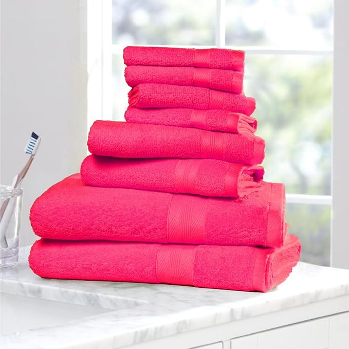 BOUTIQUO 8 Piece Towel Set 100% Ring Spun Cotton, 2 Bath Towels 27X54, 2 Hand Towels 16X28 and 4 Washcloths 13X13 - Ultra Soft Highly Absorbent Machine Washable Hotel Spa Quality - Hot Pink
