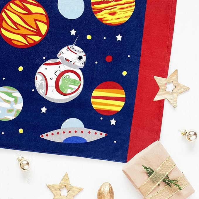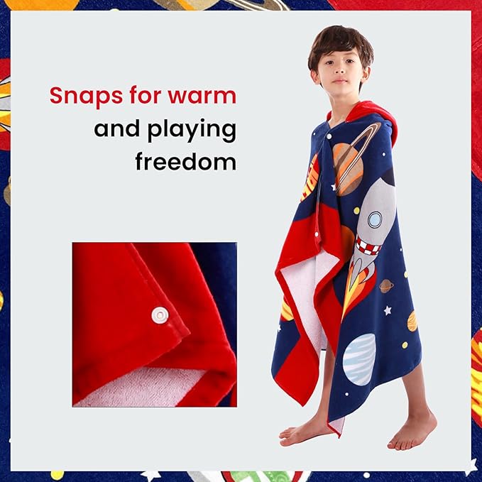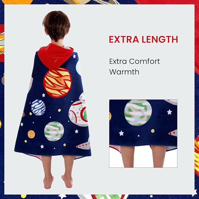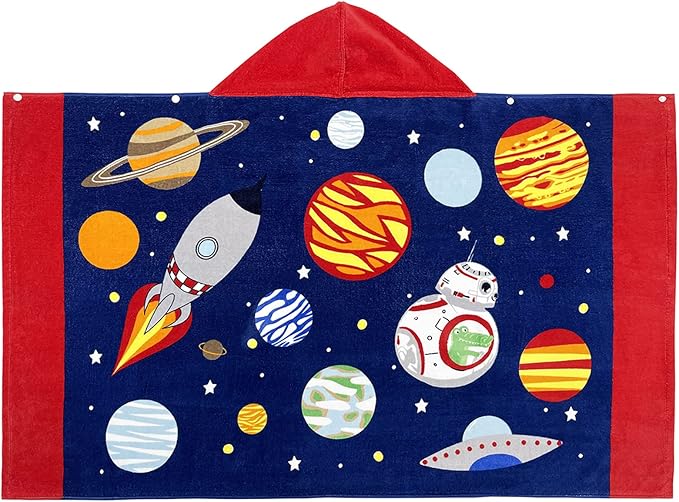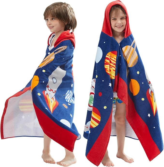 BANGSAUR Kids Hooded Beach Bath Towels, 100% Cotton 50"x30" Wrap Blanket, Toddlers Boys 3-12 Years Coverup Towel Outer Space N