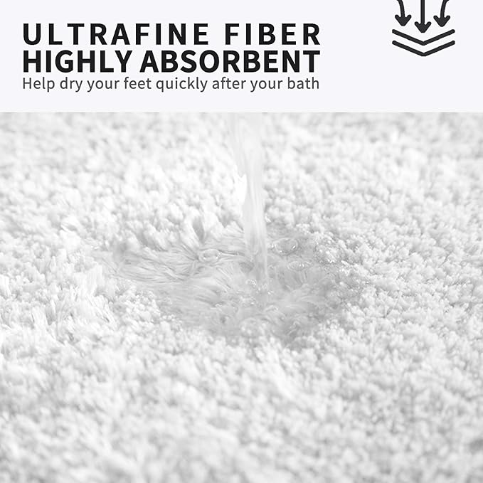 FIFU Bathroom Rugs 17" W x 24" L, Bath Mat for Bathroom, Bedroom, Laundry Room & Kitchen, Non-Slip Rubber Latex Backing, Extra Soft and Absorbent Microfiber Carpet, Machine Washable Rug, White