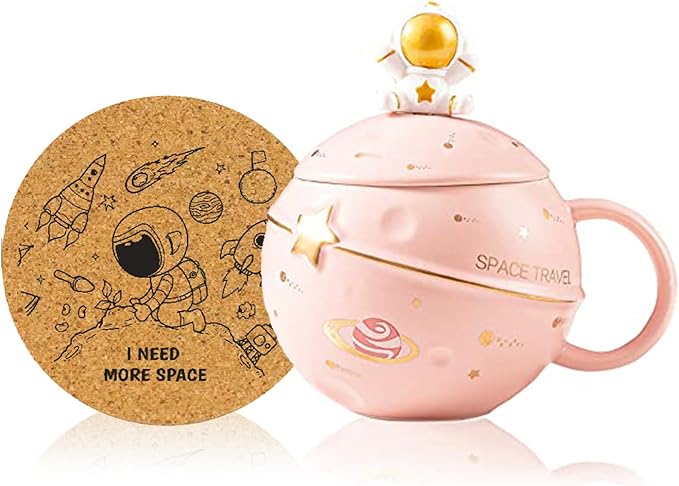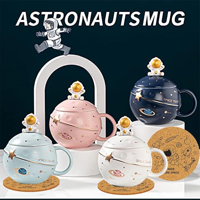 - 🌎This cup body adopts embossed design, which is different from ordinary cups on the market. The astronaut's cup lid and spoon make people look bright and unforgettable.