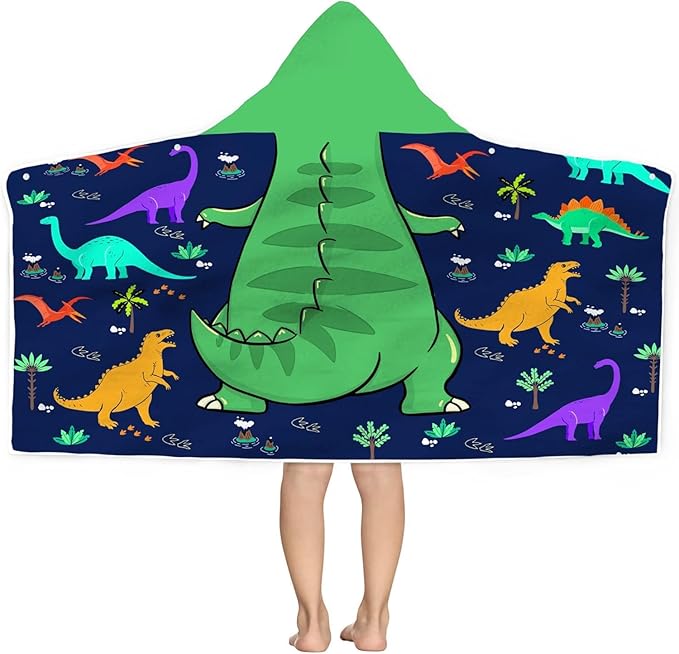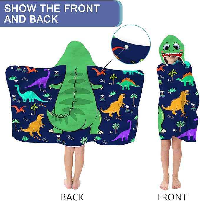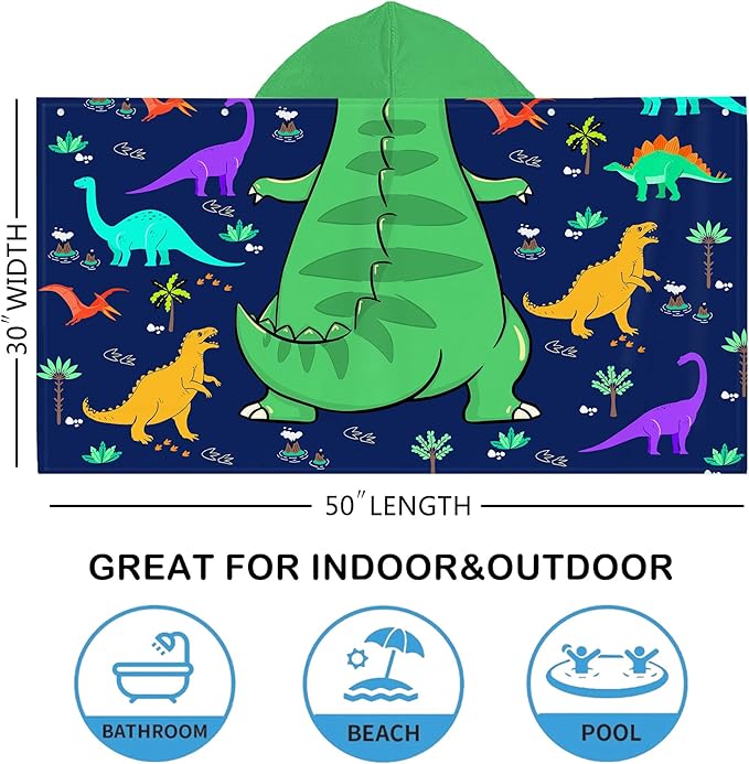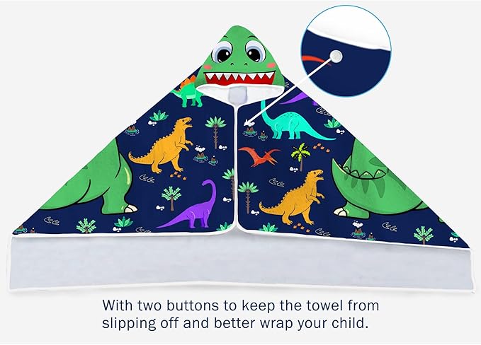 - [Multifunctional]: Our dinosaur towels with hood for kids and boys can be used at home for bath-time fun, and the dinosaur hooded towel can also be used in the beach or swimming pool, protecting your children from catching cold after long water playing, drying quickly and keeping warm with comfortable experience
