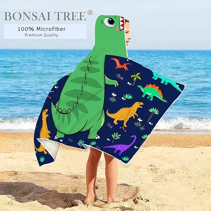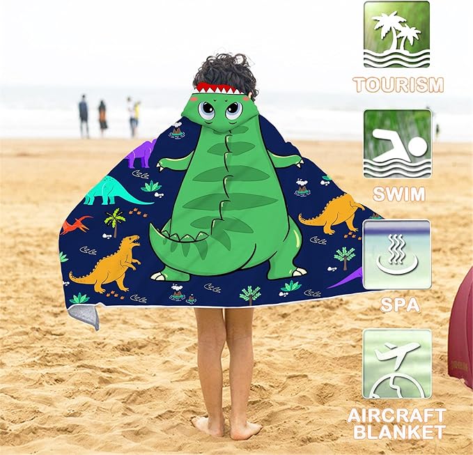 - [UNIQUE ADVANTAGES]: It is not the same as cotton, but it's smoother and stronger than cotton or terry cloth quality. Fast Quick drying - 3 times faster than cotton. The dinosaur hooded beach towel can absorb up to 7 times its weight
