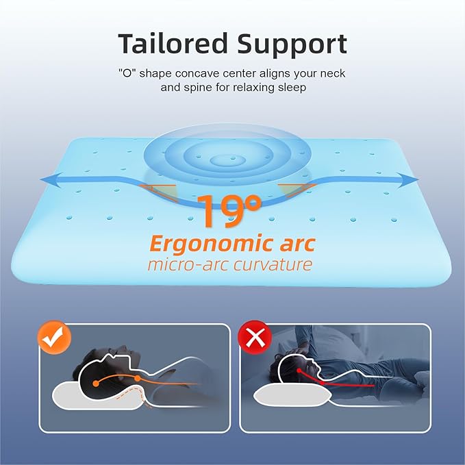 - 【Breathable for Comfortable Sleep】The ventilated memory foam, coupled with breathable pillowcase help dissipate heat away and increase airflow to prevent overheating.