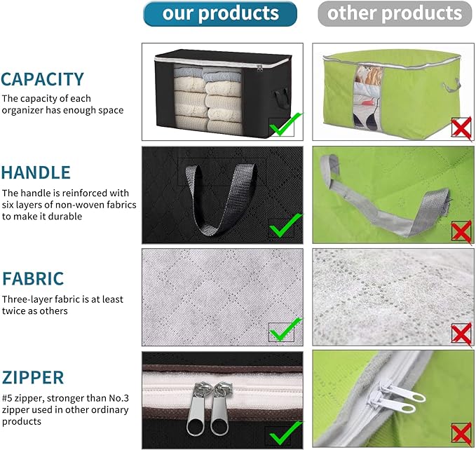 - Large Capacity: Each storage bag measures 23 x 16 x 13 inch (60 x 45 x 35 cm). The organizer capacity is 90L. It is spacious for your comforters, blankets, pillows, plush toys, jackets or other clothes