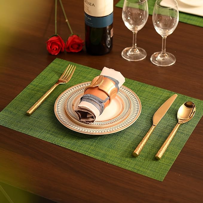 Green Placemats Set of 8 - Wipe Clean Vinyl Placemats - Washable Heat Resistant PVC Placemats for Dining Table - 17x12 Inch (Green, 8)