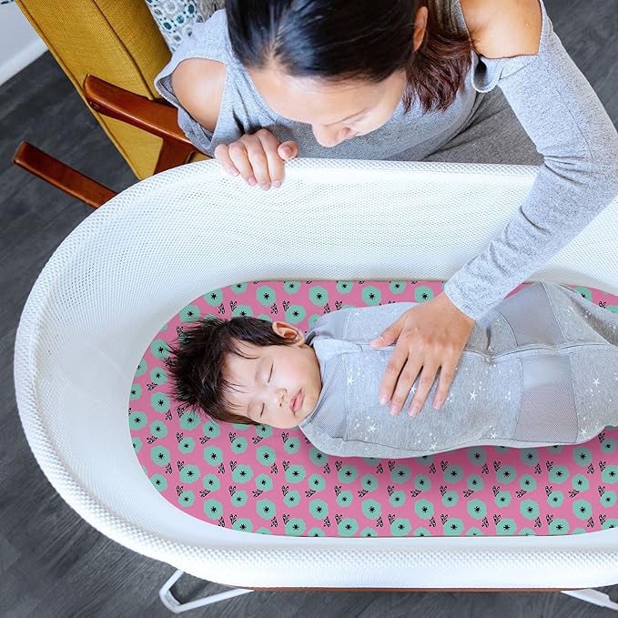 TotAha Premium Stretchy Bassinet Cradle Sheets (2-Pack) -Hypoallergenic, Silky Comfort, Buttery Soft, Calming Effect, All-Season Jersey-Knit Sheets,32 X 16 X 3''(Colorful Flora & Blue Flowers)