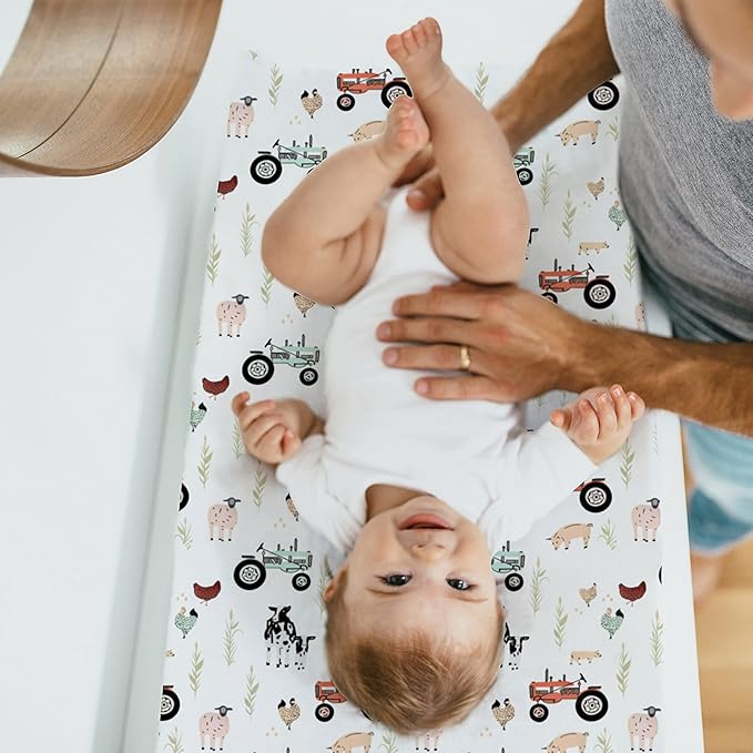 TotAha Premium Stretchy Changing Pad Cover for Baby Girl Boy, Hypoallergenic, Buttery Soft, Silky Comfort, Diaper Changing Table Cover Pad Sheets Fitted 16 x 32, 2-Pack(Farm & Pumpkin)