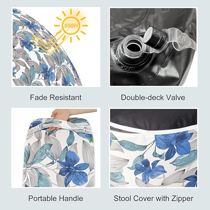 LVTXIII Outdoor/Indoor Inflatable Ottoman, All Weather Round Footrest Stool with Handle D31”x H14”, Portable Pouf for Patio Garden Camping or Home Decoration, Clemens Noir Blue