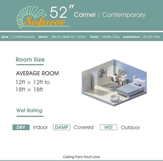 - Wide Application: Outdoor ceiling fans are designed with gray DC motor and gray wood blades, great for any indoor and covered outdoor space, living room, bedroom, child room, covered patio and covered porch.