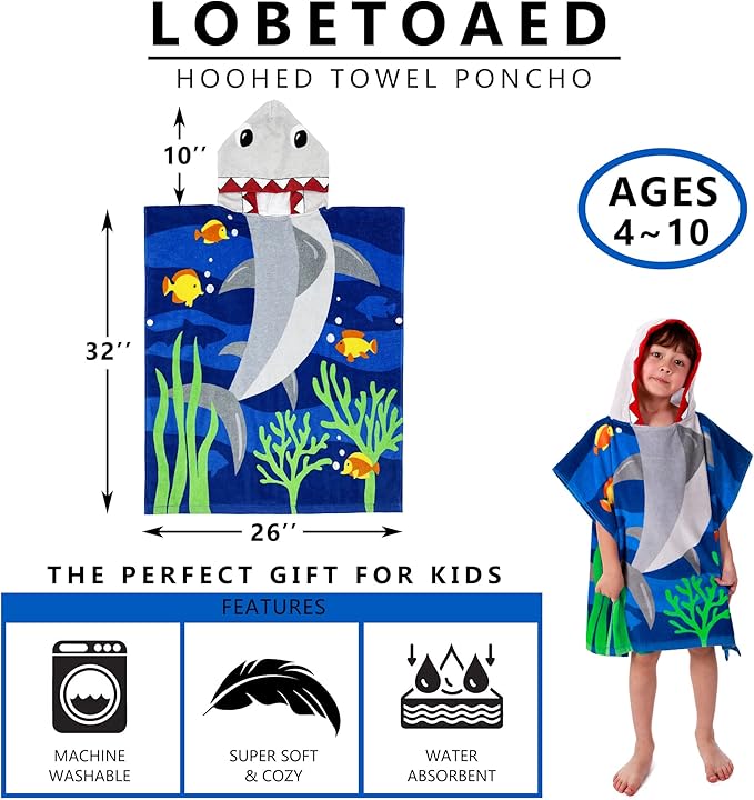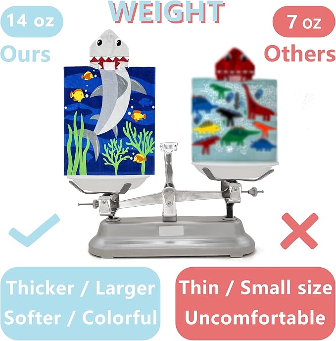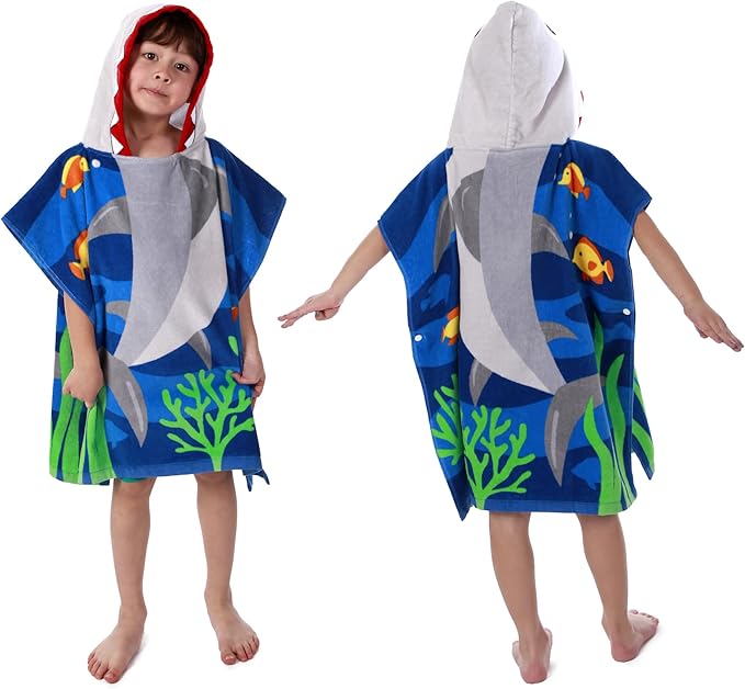 - ?MORE FRIENDLY DESIGN for KIDS?? Our baby bath & hooded towel has two snaps on the side to help you wrap your child up in comfort and playful style.This surf poncho is easy to put on and off, and will not slide down from body.The hood can helps dry your child's hair. We have many cute cartoon styles suitable for boys & girls like Dinosaur, Mermaid, Cat, Unicorn, Shark, Car, Narwhal...