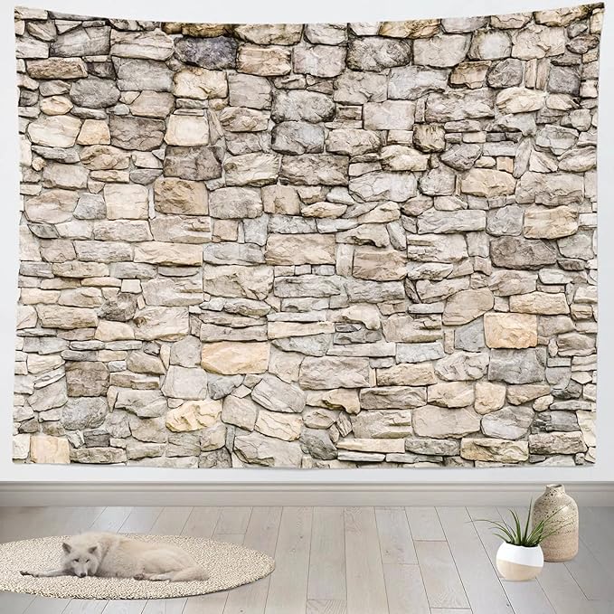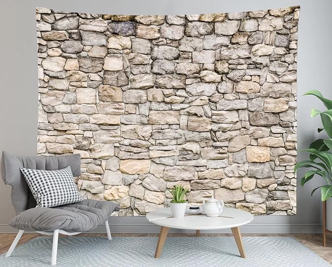 Loccor Brick Wall Tapestry Grey Old Stone Wall Tapestries Wall Hanging Vintage Rock Masonry Stonewall Abstract Art Tapestry Brick Photo Backdrop Bedroom Living Room Dorm Home Decor W60 x H50