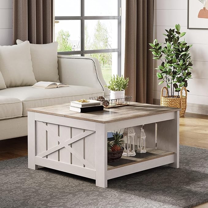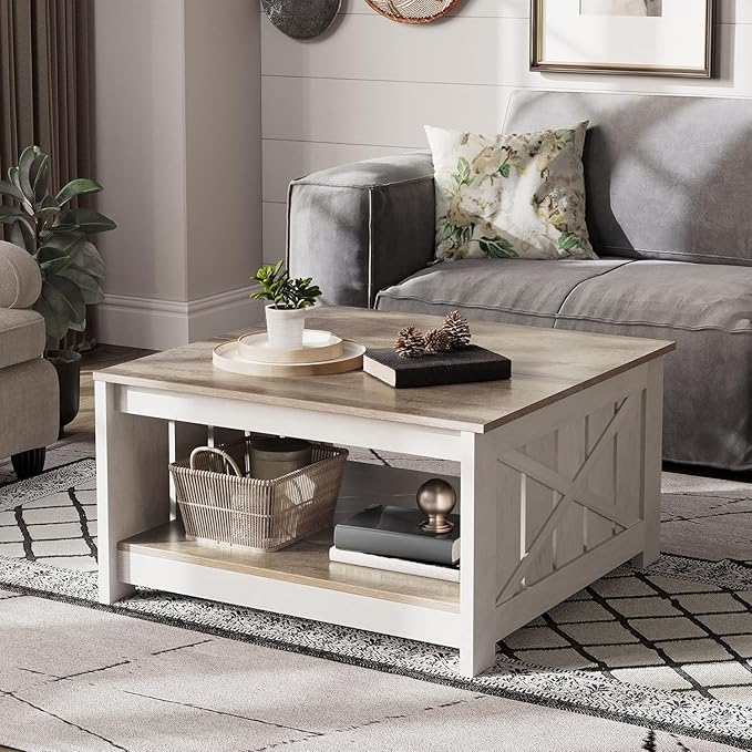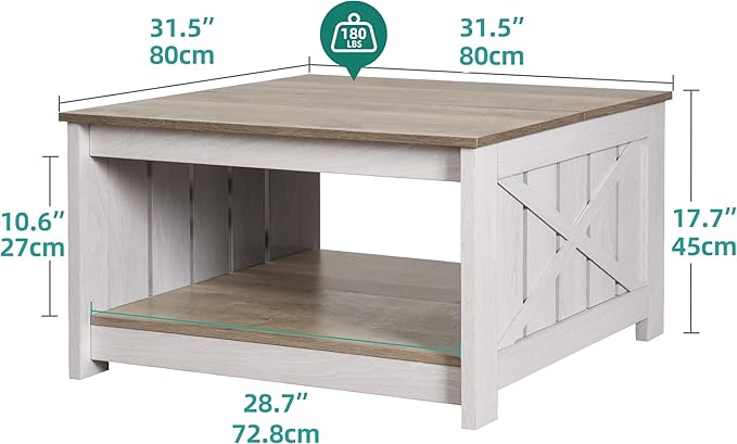 - MODERN & FARM STYLE- Our coffee table combines the natural grey wash with grayish-white; the minimalist design also adds unique rustic aesthetic to your room; square coffee table can complement any modern or rustic rooms, highlighting your personal taste and ideals