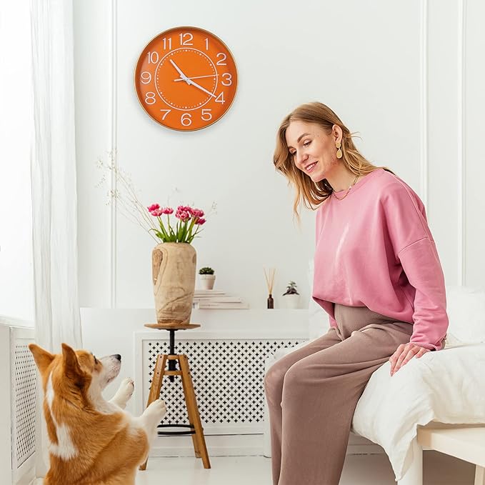 - [Decorative Wall Clocks]The small and exquisite round wall clock is suitable for decorating living room,dining room,kitchen,bedroom,study or school classroom,office,etc. Simple design and fashionable color matching can adapt to various styles of environment.