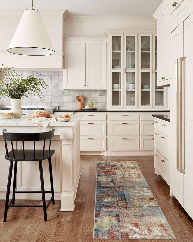 - [Functional Runner Rug] - A runner rug is perfect for long, narrow kitchens and entryways. Or, put a 2x4.3 mat for the foot of a favorite easy chair.For doormat, hallyway, bathroom,laundry room,a rectangle abstract mat are also prerfect for daily use.