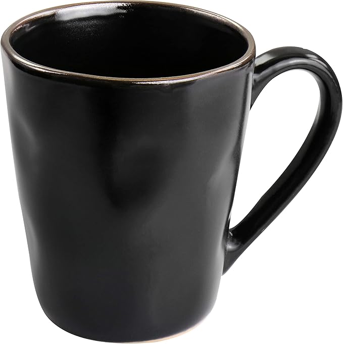 Elama Modern 16 Piece Stoneware Dinnerware Set in Matte Black with Gold Rim (ELM-MATTE)