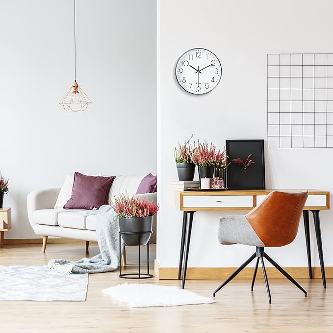 Wall Clock 12 Inch Wall Clocks Non-Ticking Battery Operated with Stereoscopic Dial Ultra-Quiet Movement Quartz for Office Classroom School Home Living Room Bedroom Kitchen