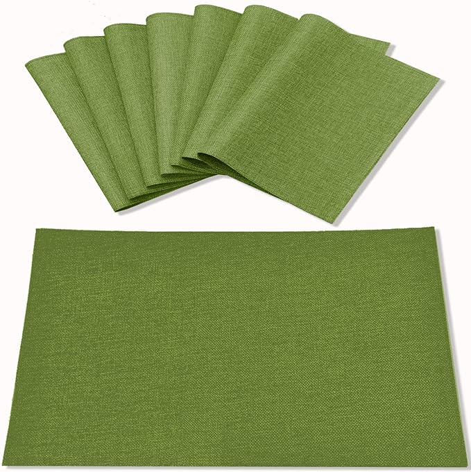 Linen Placemats Set of 8, Machine Washable, Heat Resistant, Wrinkle Free, Thick Polyester Kitchen Place Mats for Dining Table (Green)
