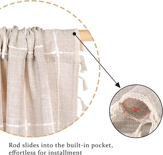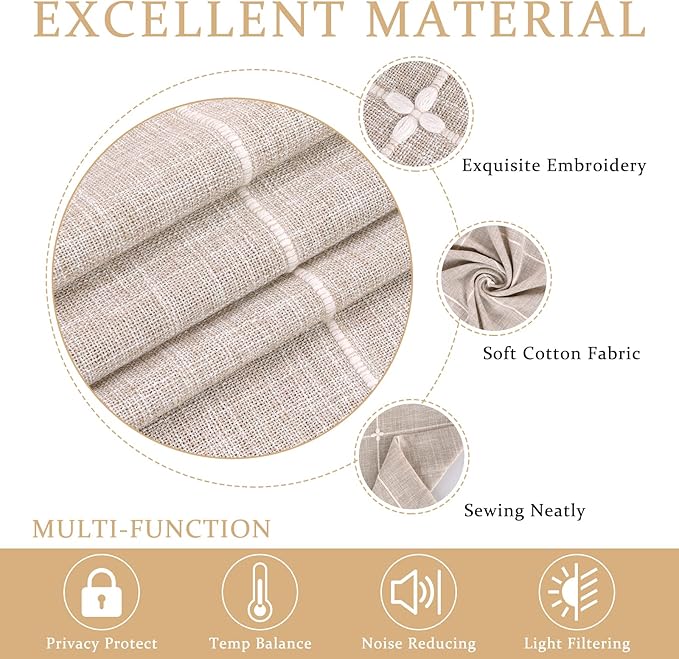 - Farmhouse Curtains - These curtains add boho and farmhouse vibes. Neutral hues and a big window pane design give them a classic look that will fit nicely into your living room, kitchen, dining room, hallway door, camper, bedroom, nursery and etc.
