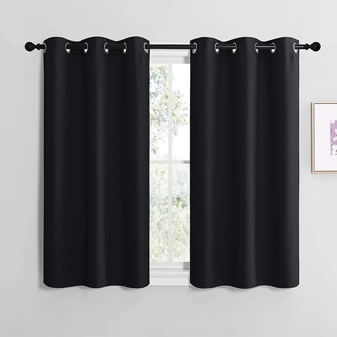 NICETOWN Halloween Bathroom Blackout Curtains and Drapes, Black Solid Thermal Insulated Grommet Blackout Drapery Panels for Window (2 Panels, 42 inches Wide by 40 inches Long, Black)