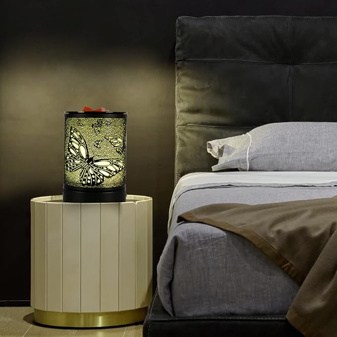 - BUTTERFLY DESIGN:Enaroma electric wax warmer is black colour butterfly pattern ,Look like butterflies are flying among the flowers,Led 7colors nightlight , Reliable heating and easy to clean and use silicone tray,This oil burner is great décor for home, office,Yoga and also a good christmas wax warmer for friends.
