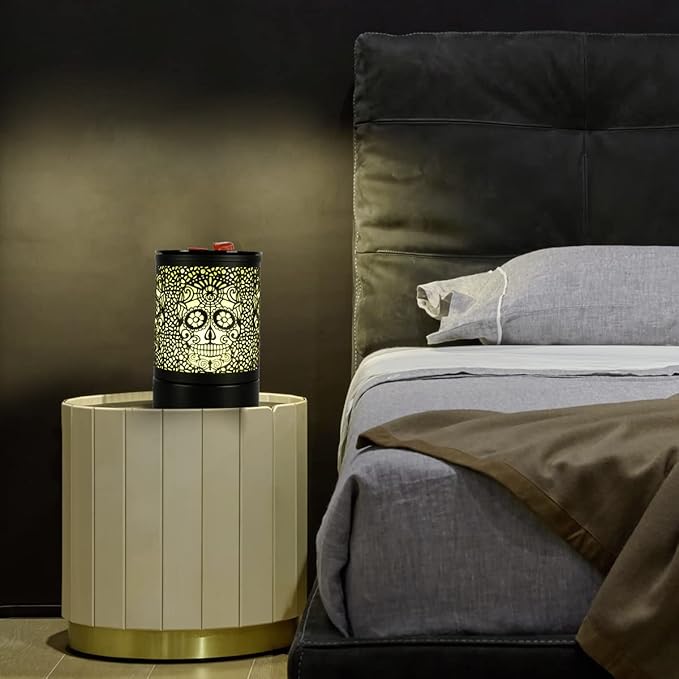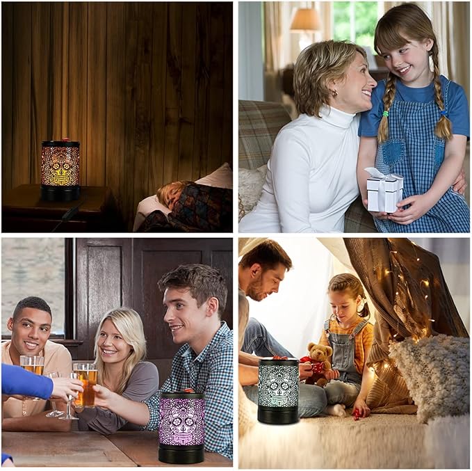- SKELETION PATTERN :Enaroma Black metallic skull electric wax warmer with Led 7colors nightlight will be the perfect additon to your home décor or for Halloween, Reliable heating and easy to clean and use silicone tray,You will enjoy beautiful ambient lighting while filling your house with your favorite fragrance. The perfect combination of traditional aromatherapy and lamps