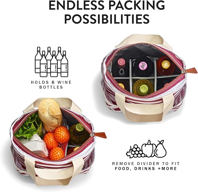 - INCLUDES REMOVABLE DIVIDER: The divider in this travel cooler bag keeps food and drinks organized. Easy to customize, this insulated cooler bag can fit anything you want! The divider is easy to store along with the collapsible cooler bag.