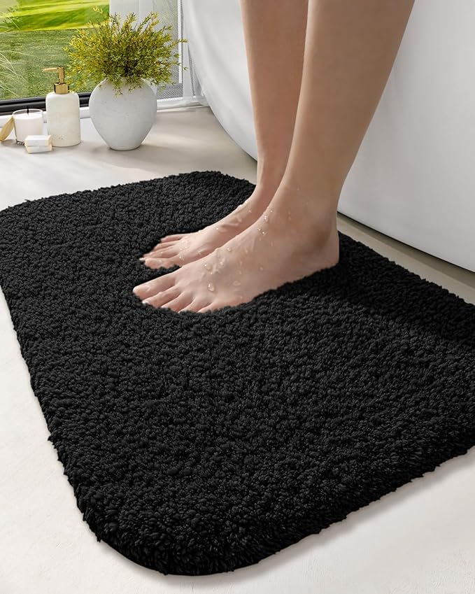 DEXI Bathroom Rug Mat 32x20, Extra Soft and Absorbent Bath Rugs, Washable Non-Slip Thick Carpet Mat for Shower Floor, Tub, Black