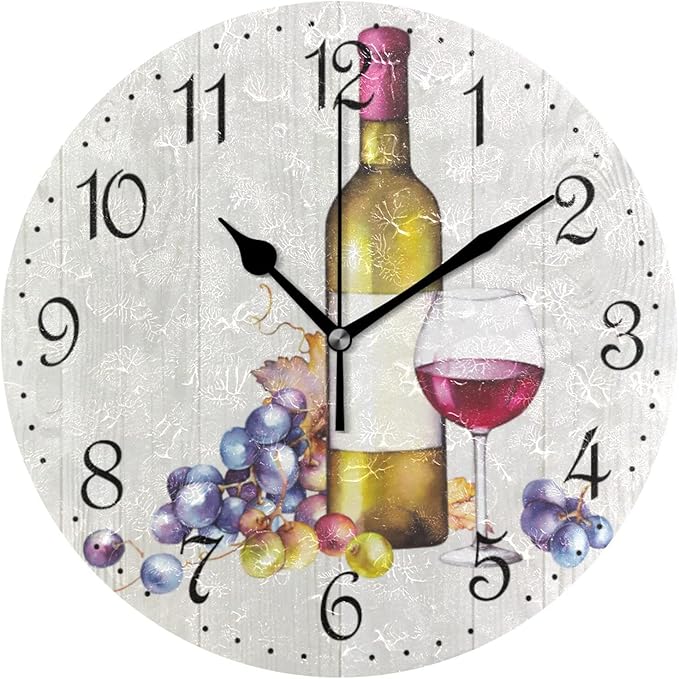 ALAZA Wall Clock Grape Wine Red Bottle Silent Non-Ticking Decorative Wall Clocks Battery Operated 10 Inch for Home Living Room Kitchen Bathroom Bedroom