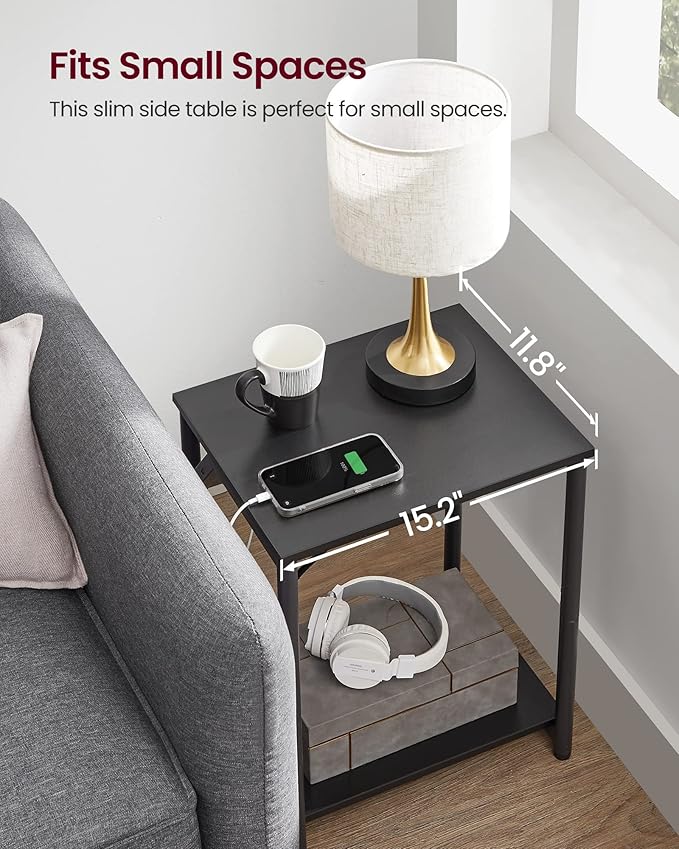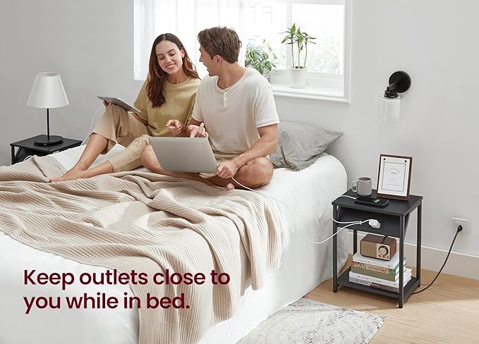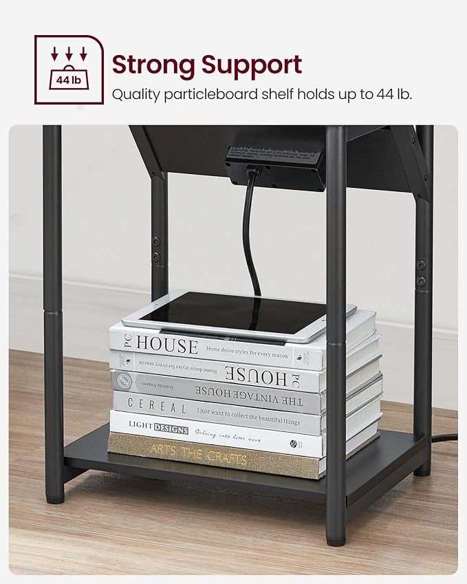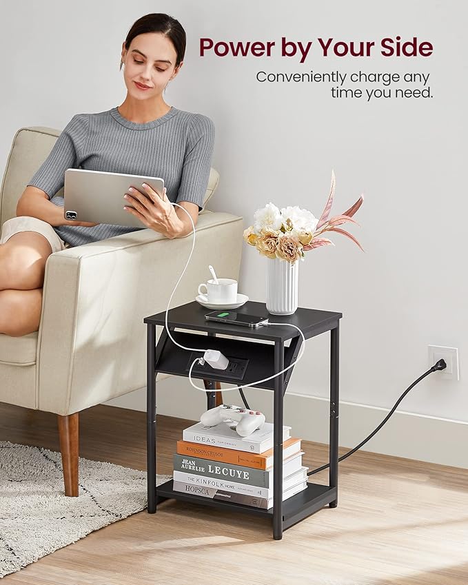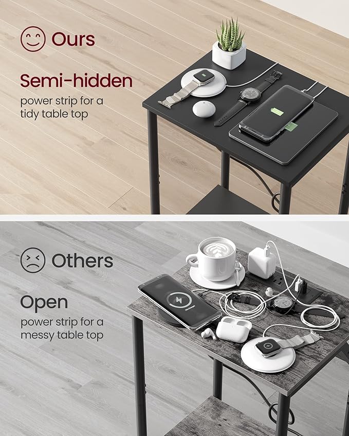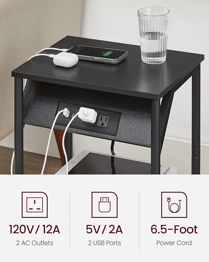 - [Side Tables with Charging Stations] Low battery? Charge your devices with these small tables featuring two AC outlets, two USB ports, and a 6.5 ft cord each. Also, the proper distances between outlets ensure you can use all of them at the same time