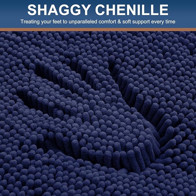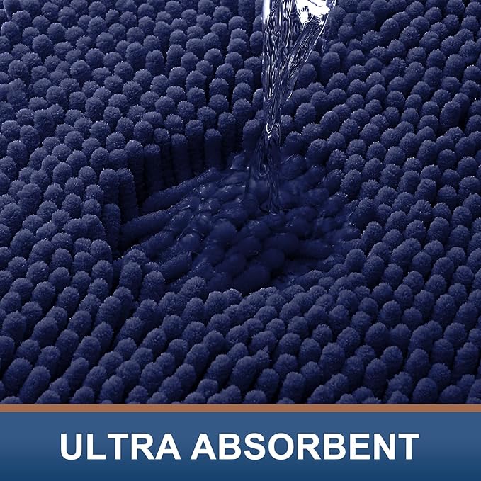 Smiry Luxury Chenille Bathroom Rugs 59x24, Extra Soft and Absorbent Shaggy Bath Mat, Machine Washable, Non-Slip Plush Carpet Runner for Tub, Shower, and Floor, Home Decor Accessories, Navy Blue