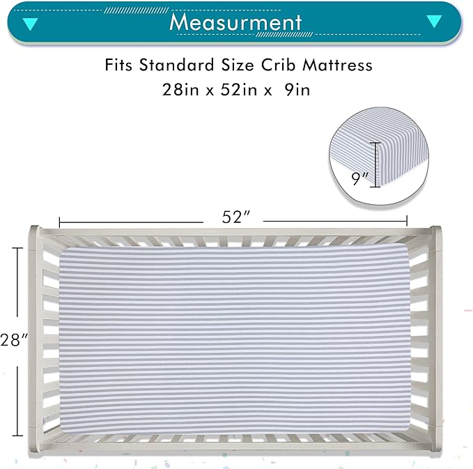 100% Cotton Jersey Knitted Standard Crib Sheets for Boys and Toddler, Soft and Breathable, Crib Sheets Girl Snug Fit, Machine Washable (P2,Gray Stripe,Silver,Rainbow, 28"x52"x9")