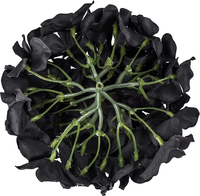 Flojery Black Silk Hydrangea Heads Artificial Flowers Heads with Stems for Home Wedding Decor,Pack of 10(Black)