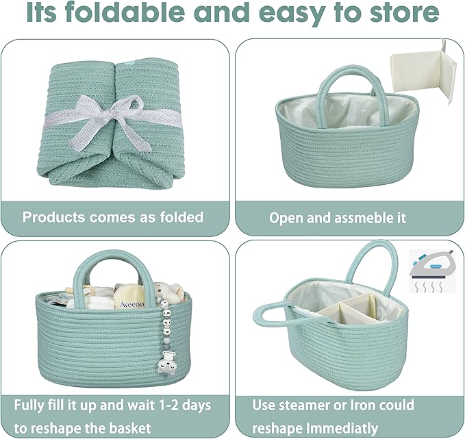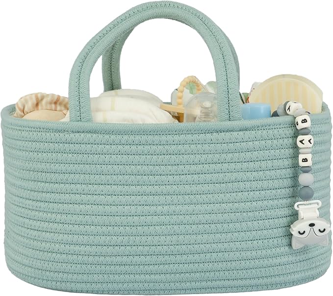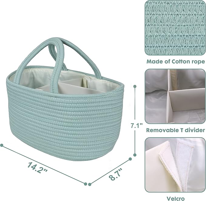 Diaper Caddy Organizer for Baby Cotton Rope Nursery Storage Bin Basket Portable Holder Tote Bag for Changing Table Car Travel Baby Shower Gifts Newborn Essentials Registry Must Haves Light Green