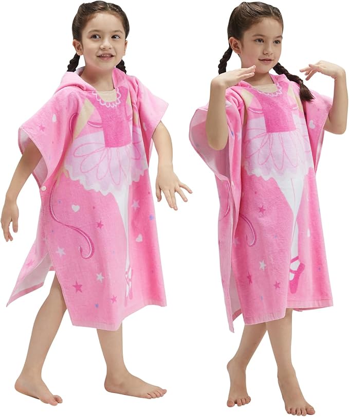 Kids Hooded Towel Bath Beach Soft Cotton Towels Girls Absorbent Pool Wrap with Hood Baby Toddler Poncho Robe(Ballerina,3-4Years/Height:33"-43")