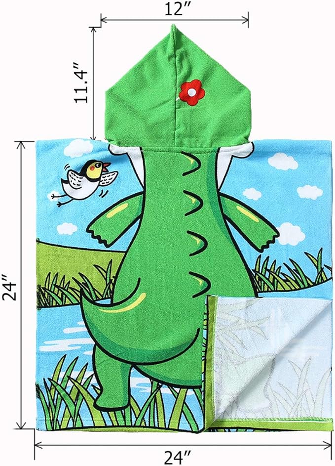 - SIZE: The kids hooded beach pool towel poncho measures 24"x24" in length with a 11.4x11.4" hood. This baby beach bath towels with hood is large enough for growing toddlers and kids(1-6 years old) or anyone under 50 inch girls boys and baby.