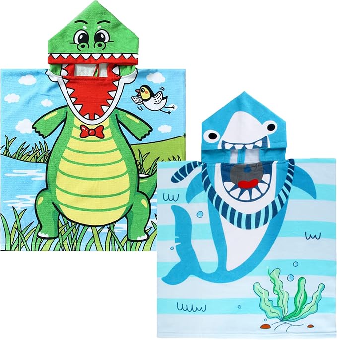 - Cute Cartoon Design: We have designed various patterns for kids beach towel poncho, mermaid, astronaut, shark, dinosaur, pirate and more. Fully in line with baby's preferences, the color of the toddlers hooded bath towel is also based on children's vision. Let them bathe, travel on the beach, and swim in the pool beach become more interesting and meaningful.