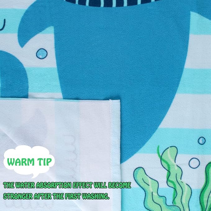 - MATERIAL: Toddler pool beach towel with hood is made of microfiber,this material is very soft, suitable for kid's young skin, friendly to people with sensitive. Hooded beach bath towel poncho have strang absorbent, better than regular towel.
