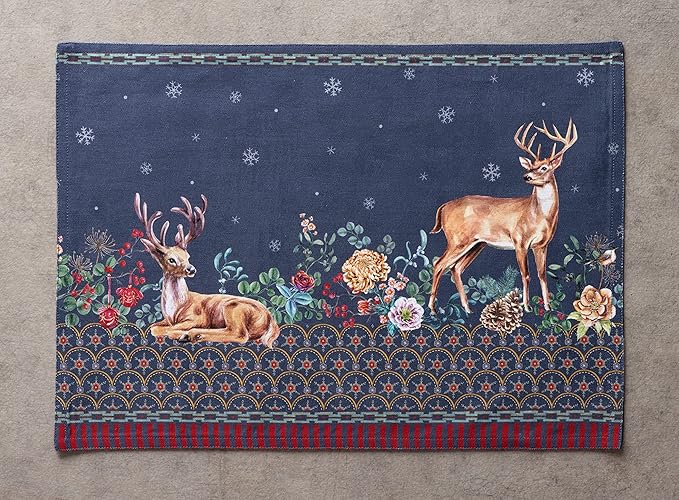 Maison d' Hermine Placemats Set of 4 100% Cotton Washable Cloth Place Mats, Reusable Table Mats for Kitchen Dining Decoration, Party, Wedding, Restaurant (Christmas Joy, 13" x 19")
