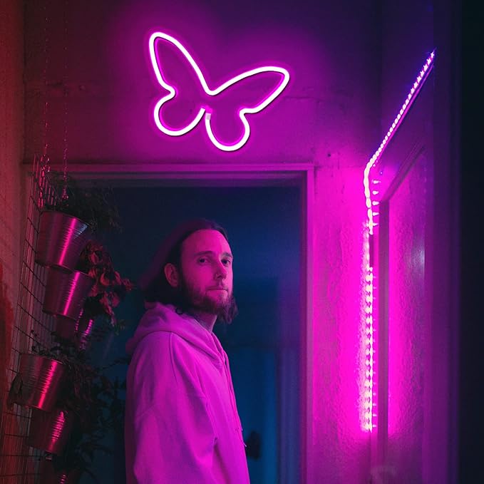 - 【ECO-FRIENDLY & ENERGY SAVING】The butterfly neon sign strip material is very durable, anti-fall. This led signs for bedroom wall made of soft flexible silicon LED strip lights to replace the traditional glass neon, no risk of breaking extremely safe. Neon light signs uses low voltage LED, energy saving and durable.Our butterfly neon light won't be getting heat after long-time use.