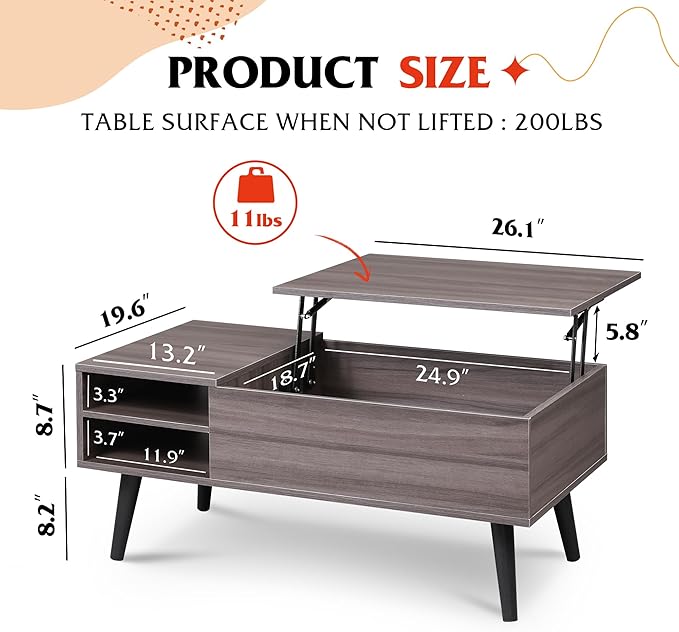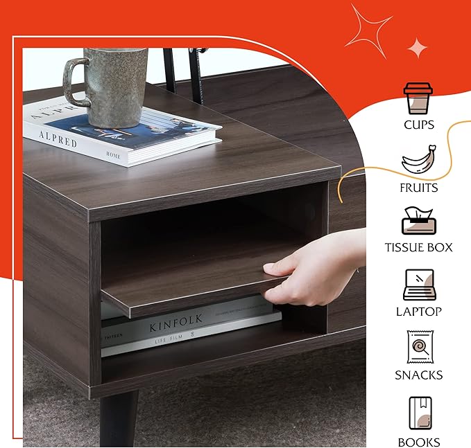 - 【Lift Top Design】When sitting on your sofa, the height of other center table may not be enough. This lift top coffee table has an extending top that lifts up to provide a floating raised work. surface,So you can working,dining and storage living room items here.