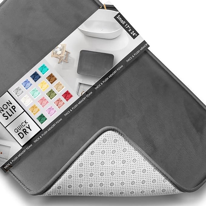 Clara Clark Bathroom Rugs, Velvet Memory Foam Bath Mat, Non-Slip, Machine Washable Bath Rugs - Dries Quickly, Ultra Soft Plush Bath Mats for Bathroom, 17 x 24, Grey